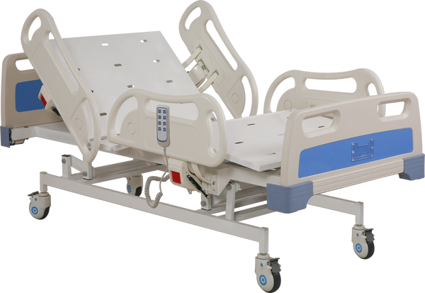 Presenting our Five Function Electric Bed, meticulously engineered to elevate patient care in hospital settings. This bed boasts five adjustable functions, including head, foot, and overall height adjustments, enabling precise positioning for medical procedures and patient comfort. With its electrically operated controls, caregivers can effortlessly customize the bed to meet the unique needs of each patient, promoting optimal comfort and support. Equipped with advanced safety features such as siderail controls, brake system, and emergency stop button, this bed ensures patient safety and stability at all times. Experience unparalleled reliability and versatility with our Five Function Electric Bed, designed to enhance the quality of care and streamline hospital operations.