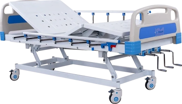 Introducing our Five Function Manual Bed, crafted to meet the exacting standards of hospital care. This bed offers five adjustable functions, including head, foot, and overall height adjustments, providing versatile positioning for patient comfort and medical procedures. With its durable construction and intuitive manual controls, caregivers can easily customize the bed to meet the individual needs of patients. Equipped with siderail controls, brake system, and a sturdy frame, this bed ensures patient safety and stability at all times. Trust in our Five Function Manual Bed to deliver reliable performance and exceptional comfort in hospital environments.