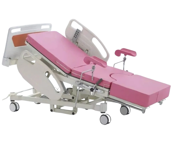 Introducing our Motorized Delivery Bed, meticulously engineered to support childbirth with optimal comfort and safety for both mother and baby. This bed features motorized adjustments to facilitate various delivery positions, ensuring flexibility and ease for healthcare providers during labor and delivery. With its intuitive controls and sturdy construction, caregivers can easily maneuver the bed to accommodate the needs of expectant mothers, promoting a smooth and comfortable delivery experience. Equipped with safety features such as siderail controls, brake system, and emergency stop button, this bed prioritizes the well-being of both mother and baby throughout the delivery process. Trust in our Motorized Delivery Bed to provide reliable performance and exceptional support for childbirth in hospital environments.